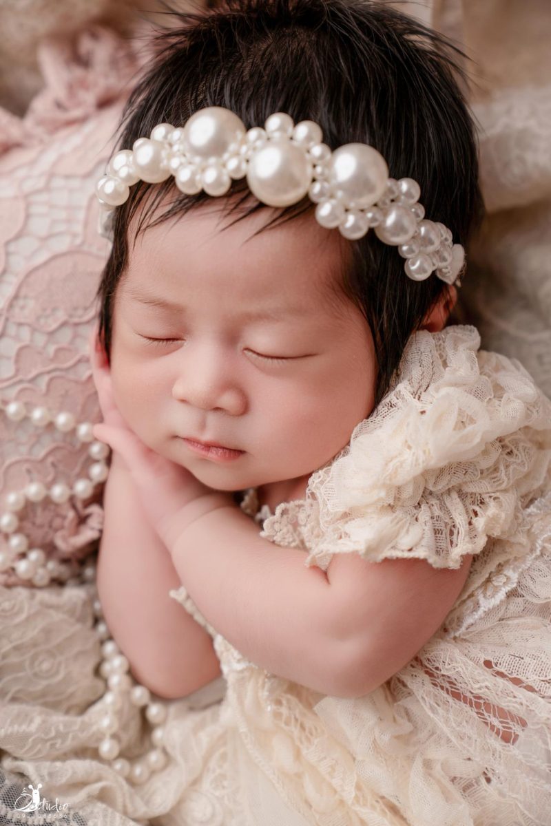 Ánh thu cổ tích khẽ khàng rót xuống giấc mơ, nơi nàng tiểu thư nhí e ấp bên đóa hoa, ren trắng và chiếc nôi nhỏ dịu dàng.