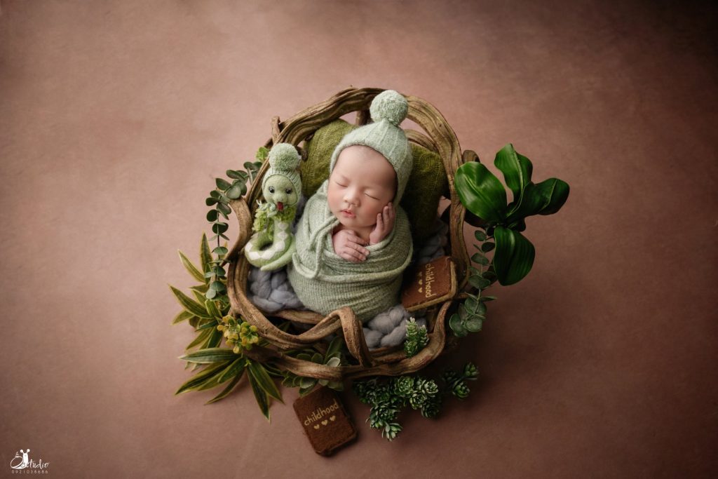 Chào đời vào năm Ất Tỵ bé yêu hóa thân thành Bé Na biểu tượng thân thương của những em bé sinh năm con rắn. Dù nằm ngoan trong lớp kén nhỏ, hay những bộ body dễ thương, ánh mắt khẽ mở hay nụ cười thoáng qua cũng đã toát lên vẻ lanh lợi và cuốn hút rất riêng. Concept được tạo hình đơn giản nhưng tinh tế nhấn vào vẻ đáng yêu và dấu ấn năm sinh đặc biệt của con