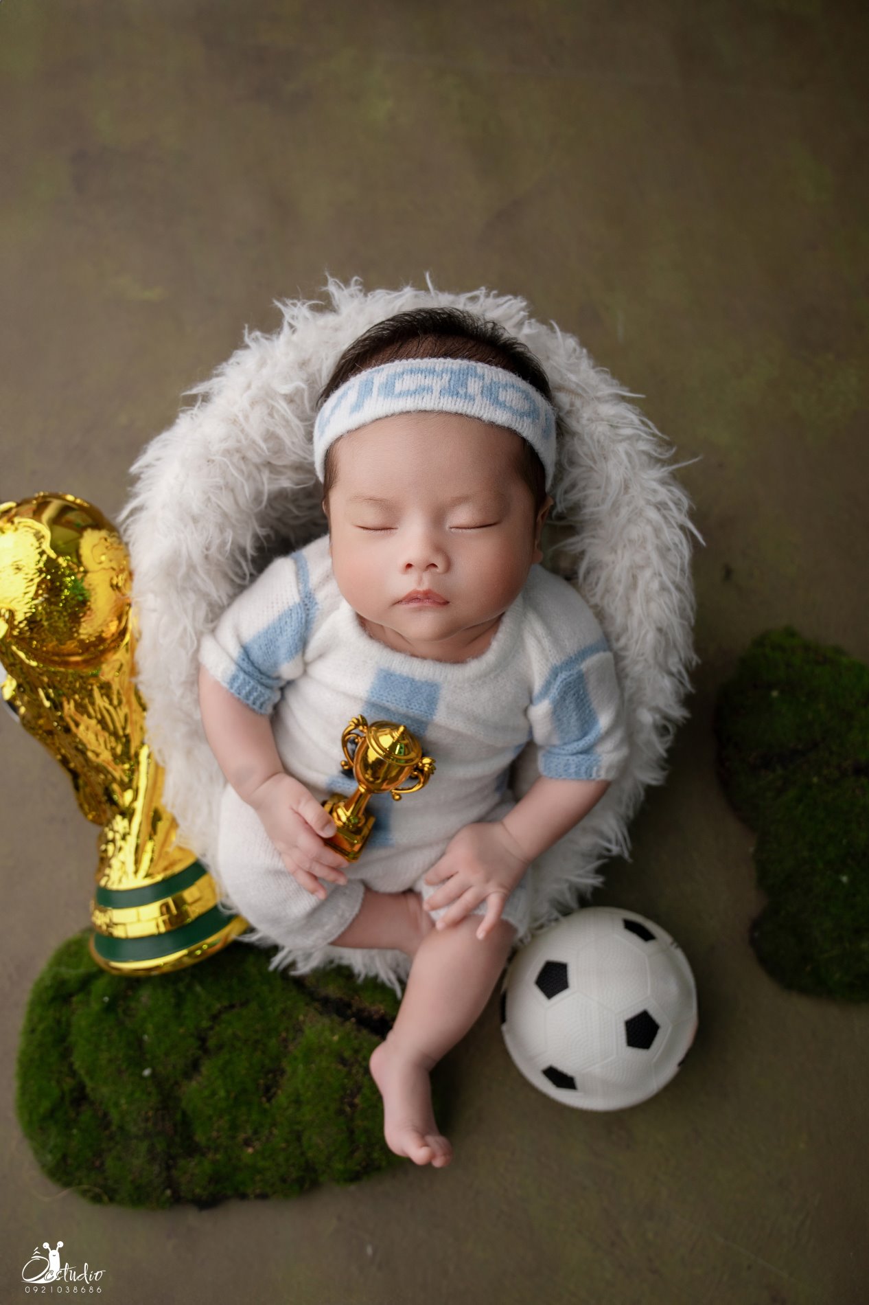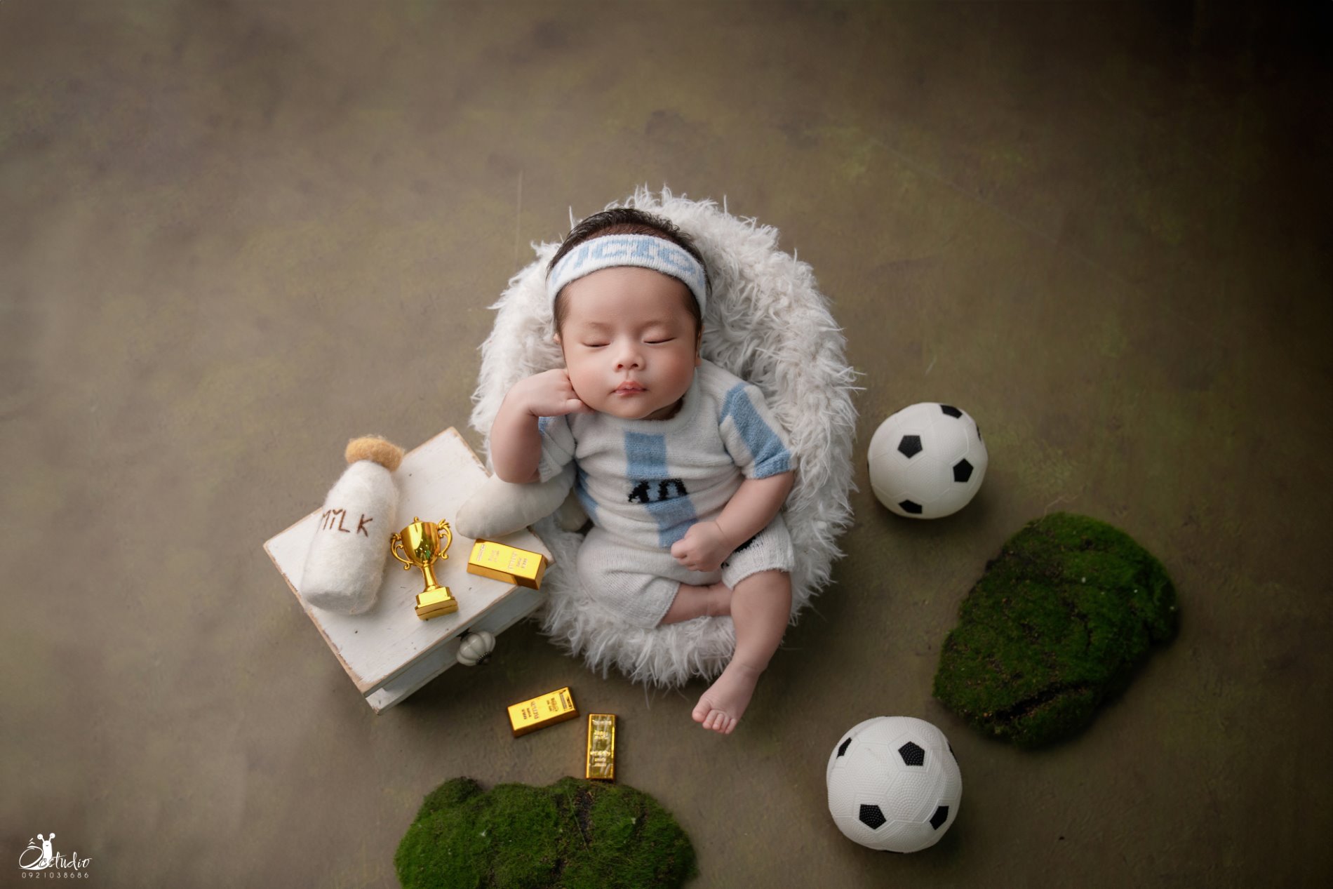 Với concept bóng đá dành riêng cho bé trai newborn, Ốc Studio mang đến một không gian nhẹ nhàng nhưng tràn đầy cảm hứng thể thao – nơi bé nằm bên trái bóng mini, chiếc áo thi đấu tí hon và những đạo cụ được thiết kế riêng cho một “ngôi sao sân cỏ tương lai”. Mỗi bức ảnh sẽ là một chương đầu tiên trong hành trình lớn lên cùng đam mê – mạnh mẽ, ấm áp và đầy hy vọng.