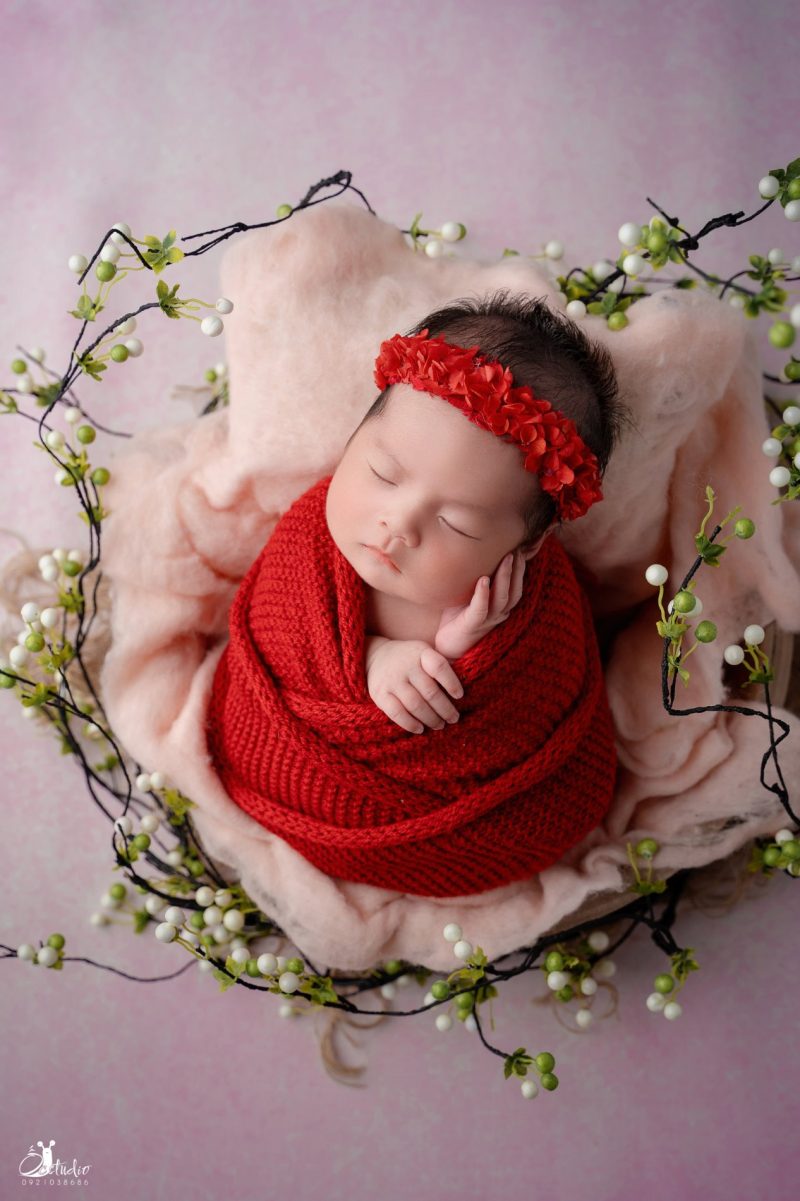 Màu đỏ luôn là sắc màu của may mắn, nổi bật và không bao giờ lỗi thời. Với những mẹ yêu sự tinh tế nhưng vẫn muốn bé yêu thật ấn tượng trong từng khoảnh khắc đầu đời, concept quấn kén đỏ là lựa chọn không thể bỏ qua.