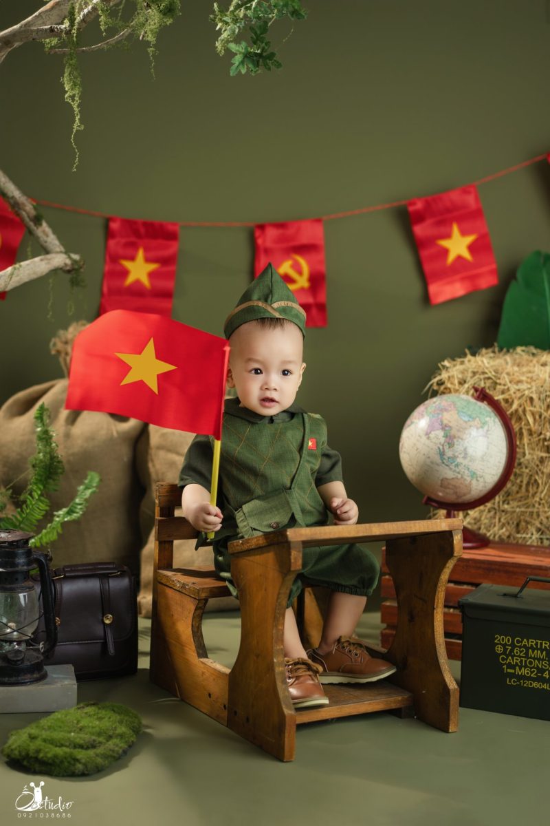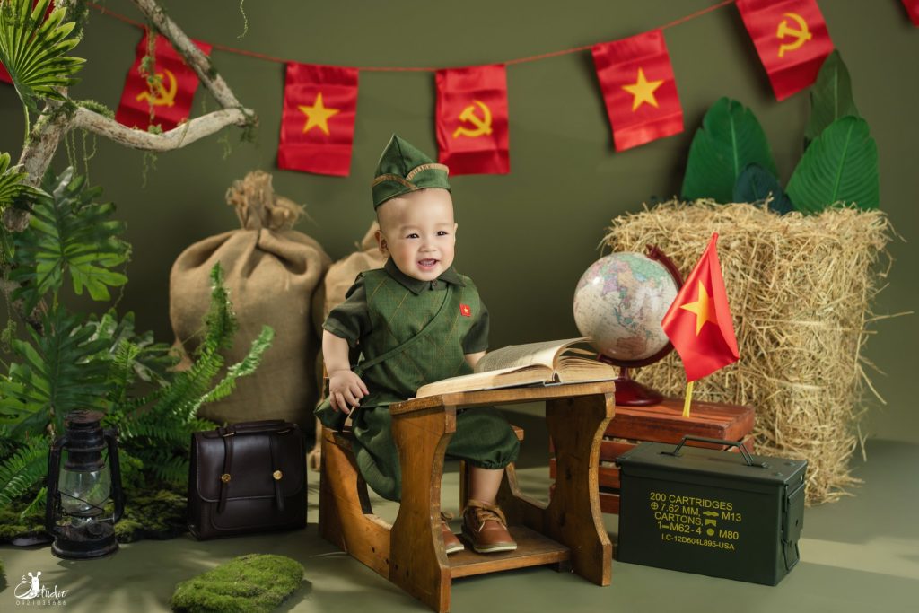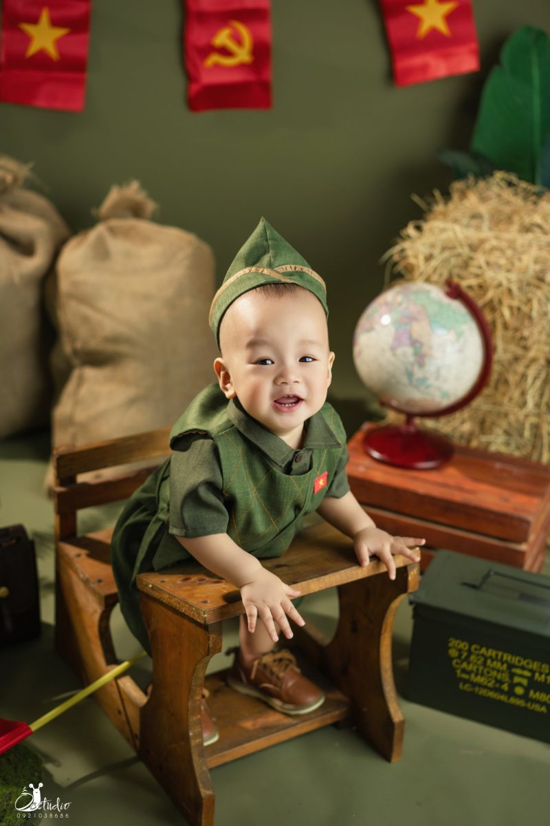 Concept 𝐄𝐦 𝐛𝐞́ Việt Nam của Ốc dành cho các bé sẽ ghi lại hình ảnh siêu đáng yêu của bé trong trang phục bộ đội Việt Nam ta đấy ba mẹ ạ.