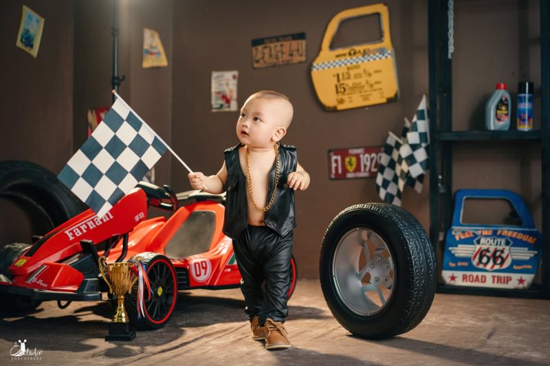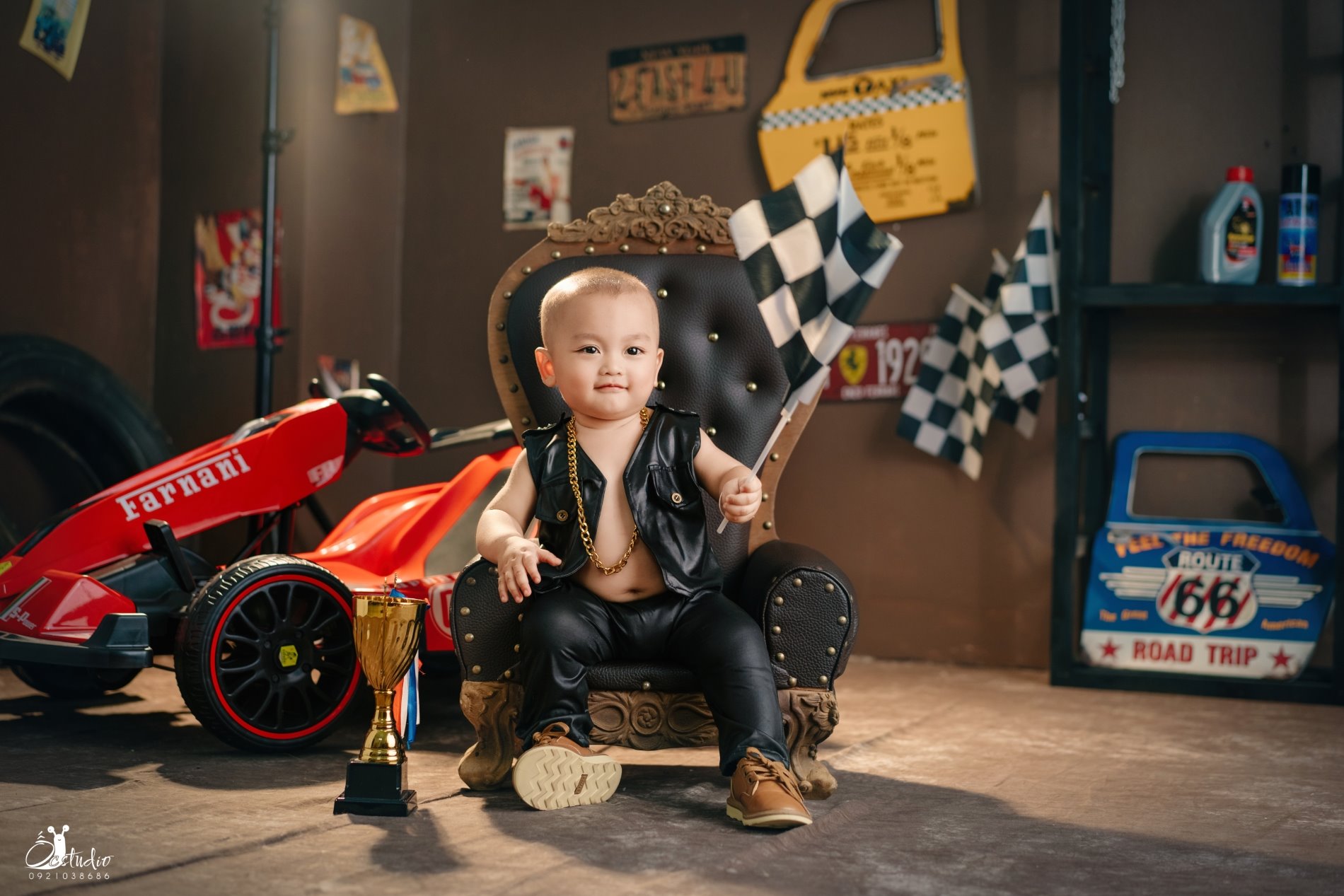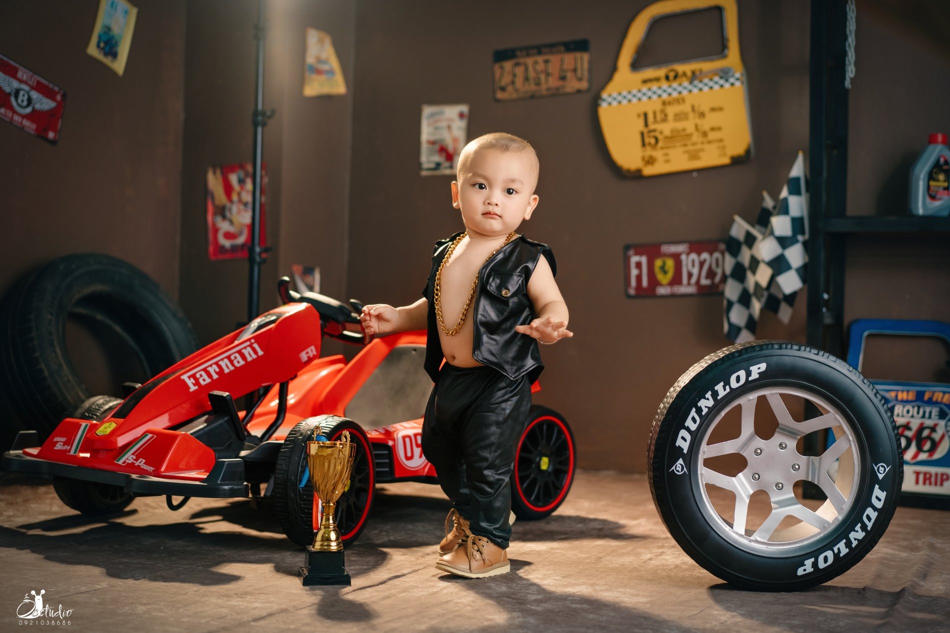 Mang trong mình tinh thần bứt phá và ánh mắt đầy quyết tâm, các bé sẽ hóa thân thành những tay đua nhí siêu ngầu trên đường đua F1 thu nhỏ tại studio! Với concept được thiết kế chuyên nghiệp, từ xe đua mô hình, nón bảo hiểm, cờ đua, đây sẽ là cơ hội để bé được nhập vai mạnh mẽ, cá tính nhưng vẫn giữ trọn nét đáng yêu hồn nhiên. Những khung hình không chỉ ghi lại nụ cười rạng rỡ mà còn là hành trình tuổi thơ đầy năng lượng và ấn tượng.